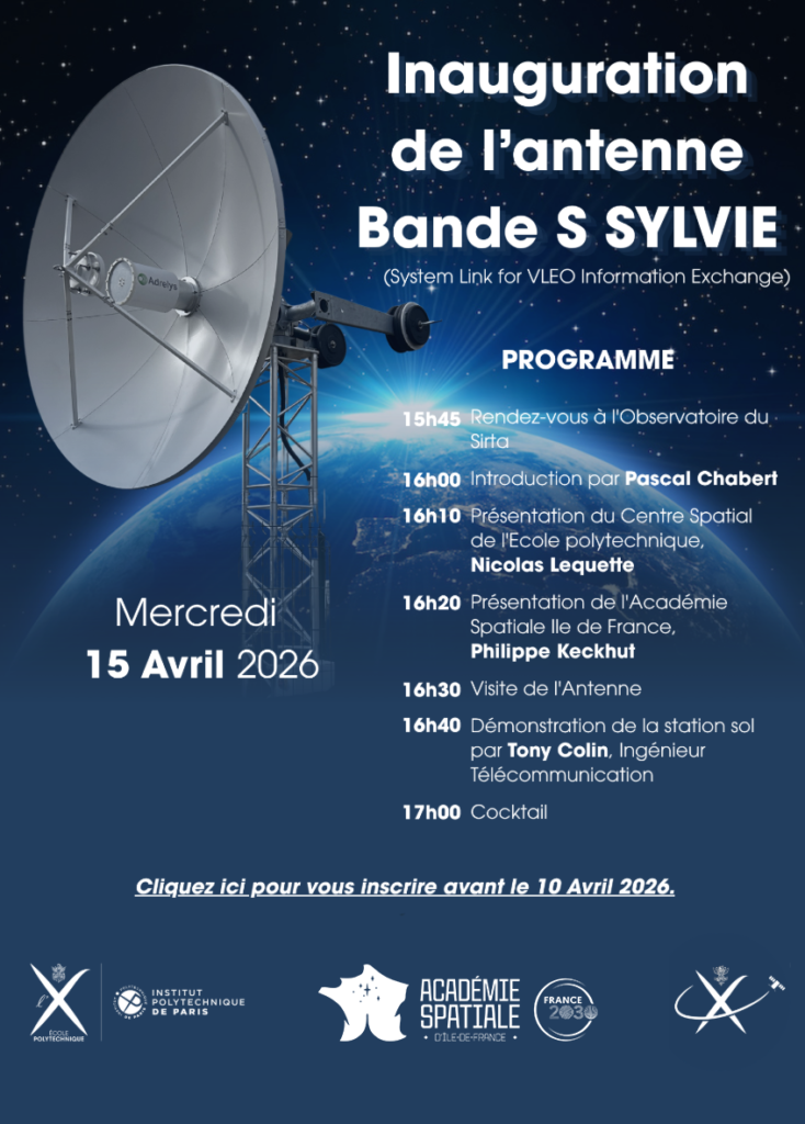 Mercredi 15 avril 2026, à partir de 15h45, rendez-vous à l’Observatoire du SIRTA pour l’inauguration de l’antenne Bande S SYLVIE financée par l’Académie Spatiale d’Île-de-France.
